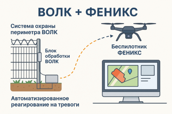 The interaction between the VOLK perimeter security system and PHOENIX drones is based on the concept of automated response to alarm events. This enables rapid visualization and verification of incidents with little or no human involvement.
